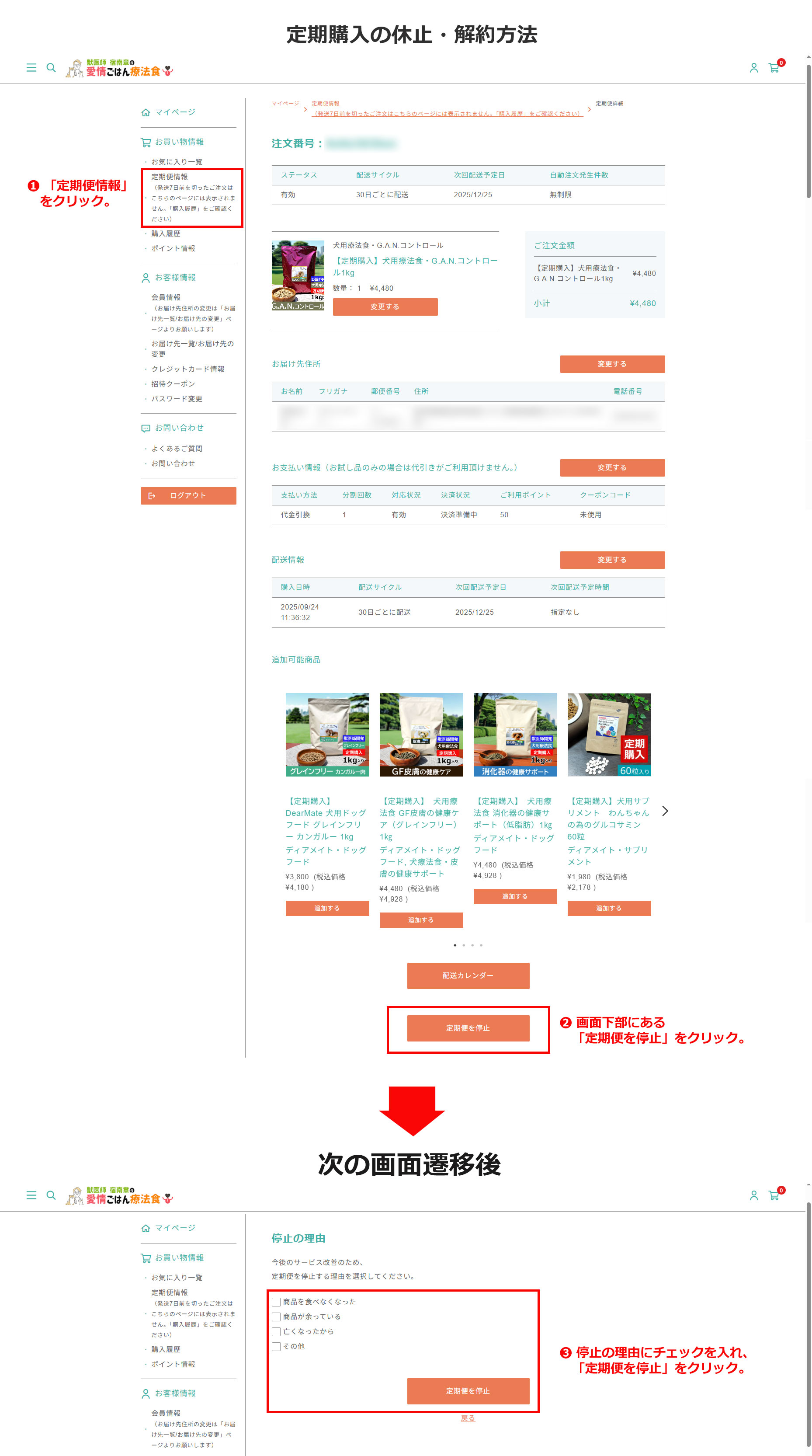 ⇒ 定期購入の休止・解約お申込みフォームはこちら