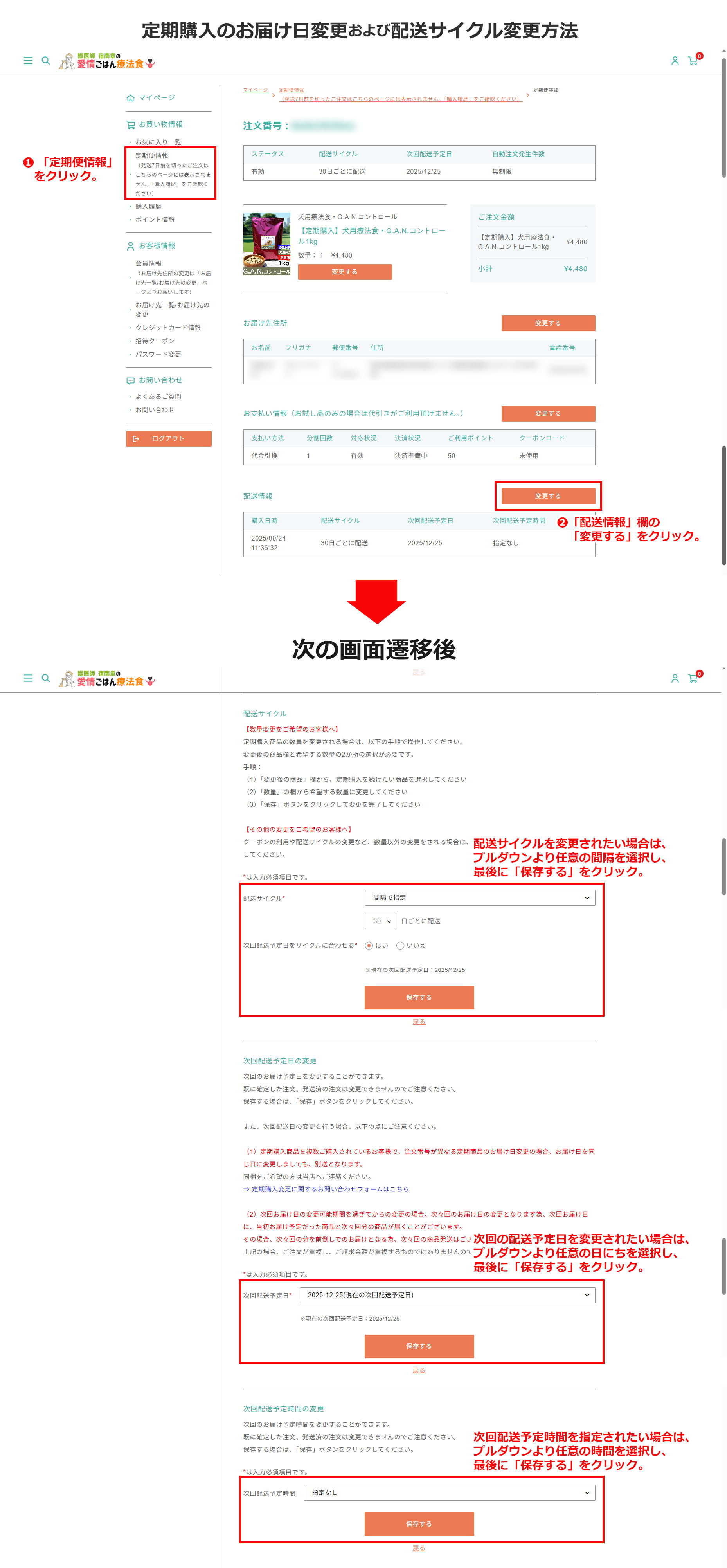 ⇒ 定期購入のお届け日変更お申込みフォームはこちら